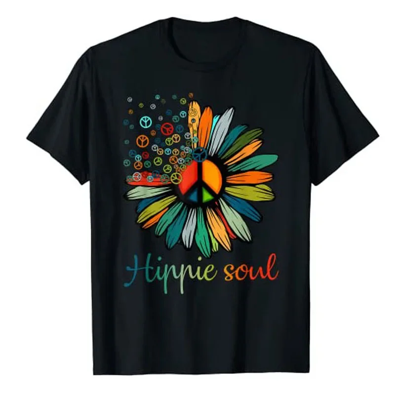 Premium Daisy Peace Sign Hippie Soul T-Shirt Flower Lovers Gifts Tee Tops Summer Fashion
