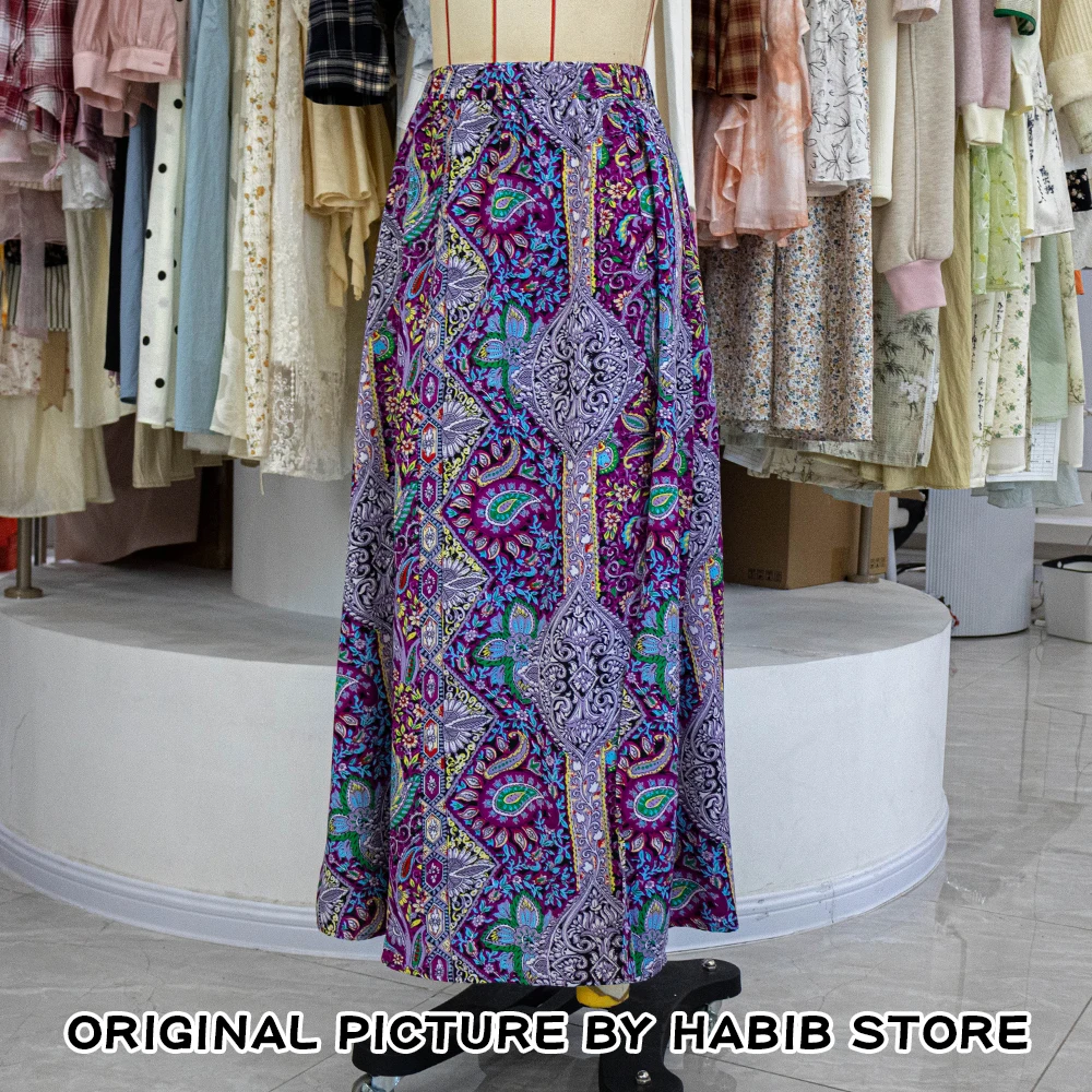 Bohemian Boho Retro Floral Print Skirts Women Indie Folk Summer High Waist A-Line Pleated Long Skirts Casual Holiday Beach Skirt